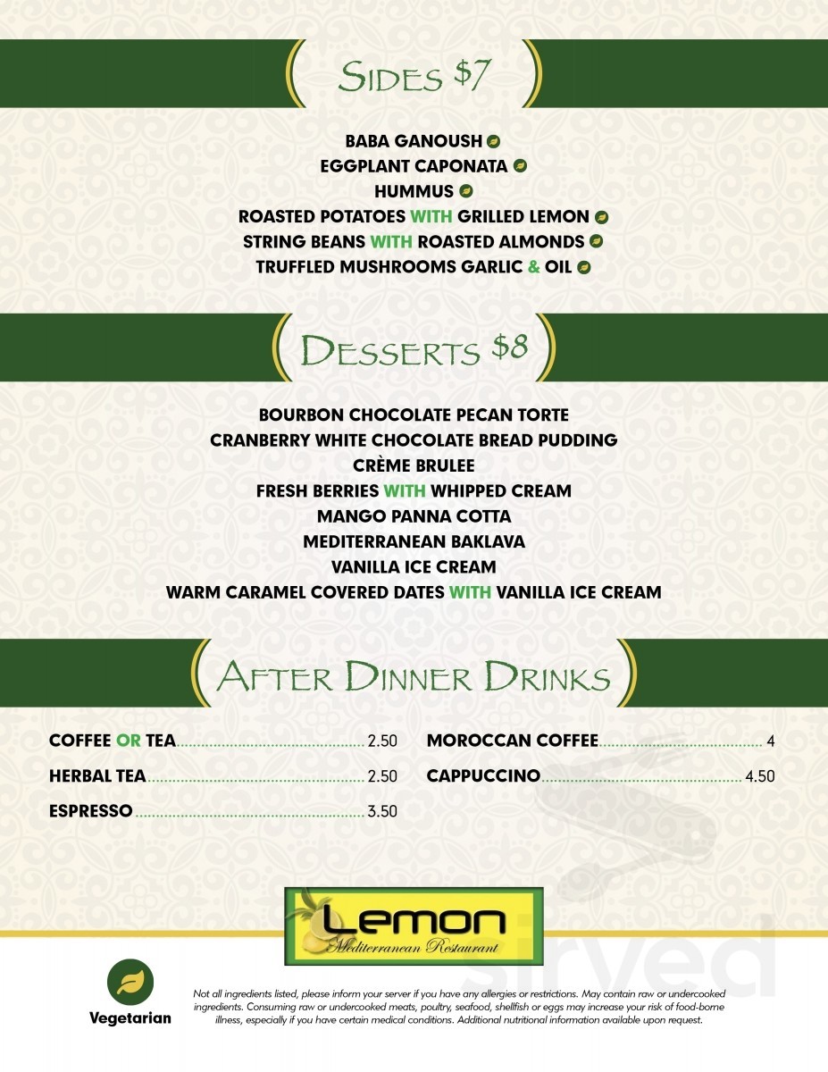 Lemon Mediterranean Restaurant Menu In Freehold New Jersey Usa